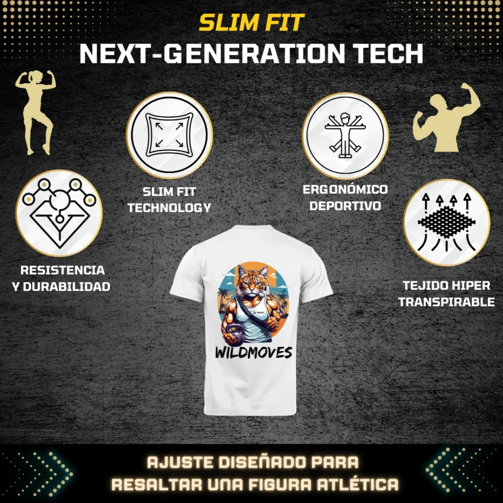 Camiseta deportiva transpirable ligeramente elástica diseñada en España. Tela fina y elástica con tecnología de ventilación avanzada, diseñada para una transpirabilidad óptima y un efecto refrescante, ideal para el verano. Corte slim fit para un ajuste estilizado y cómodo